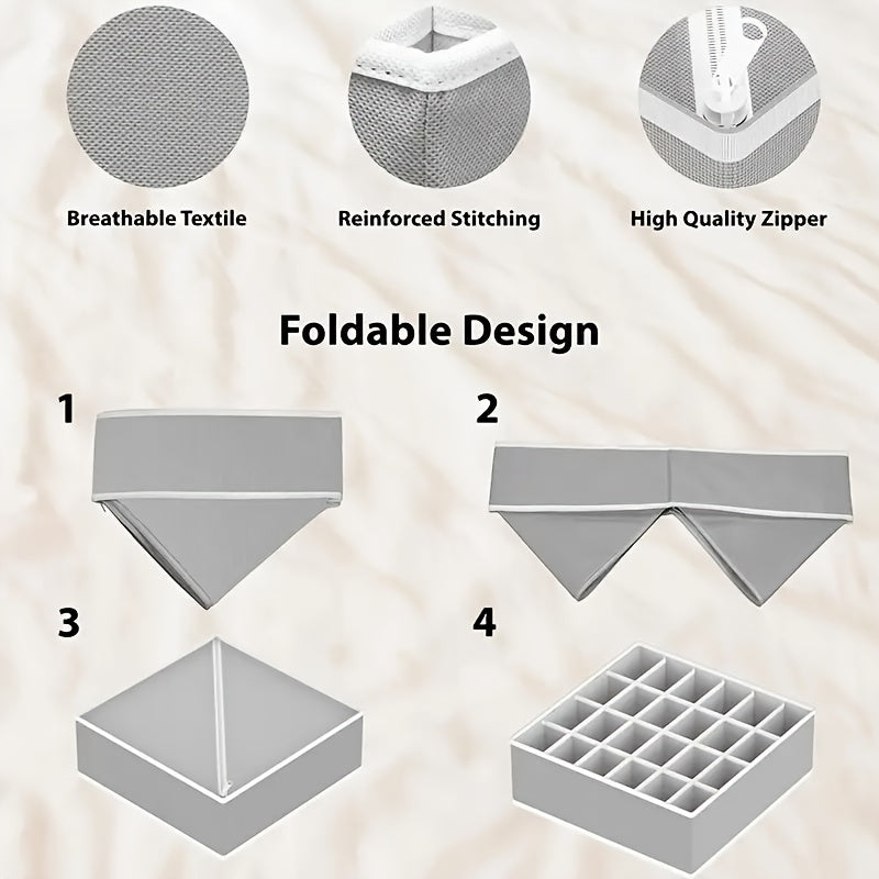 4pcs Underwear & Bras Organizer Storage Boxes - Foldable Drawer Dividers with Multi-Compartment for Socks, Ties, Belts, Scarves - Durable Plastic Closet Organizers, Space-Saving Design, Clothes Organizer Storage, Wardrobe Org