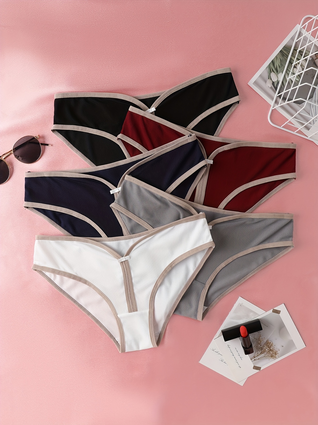 5-Pack Elegant Women'S Panties, Breathable Knit Polyester Fabric, Solid Color Underwear with Stretch, 90% Polyester 10% Elastane