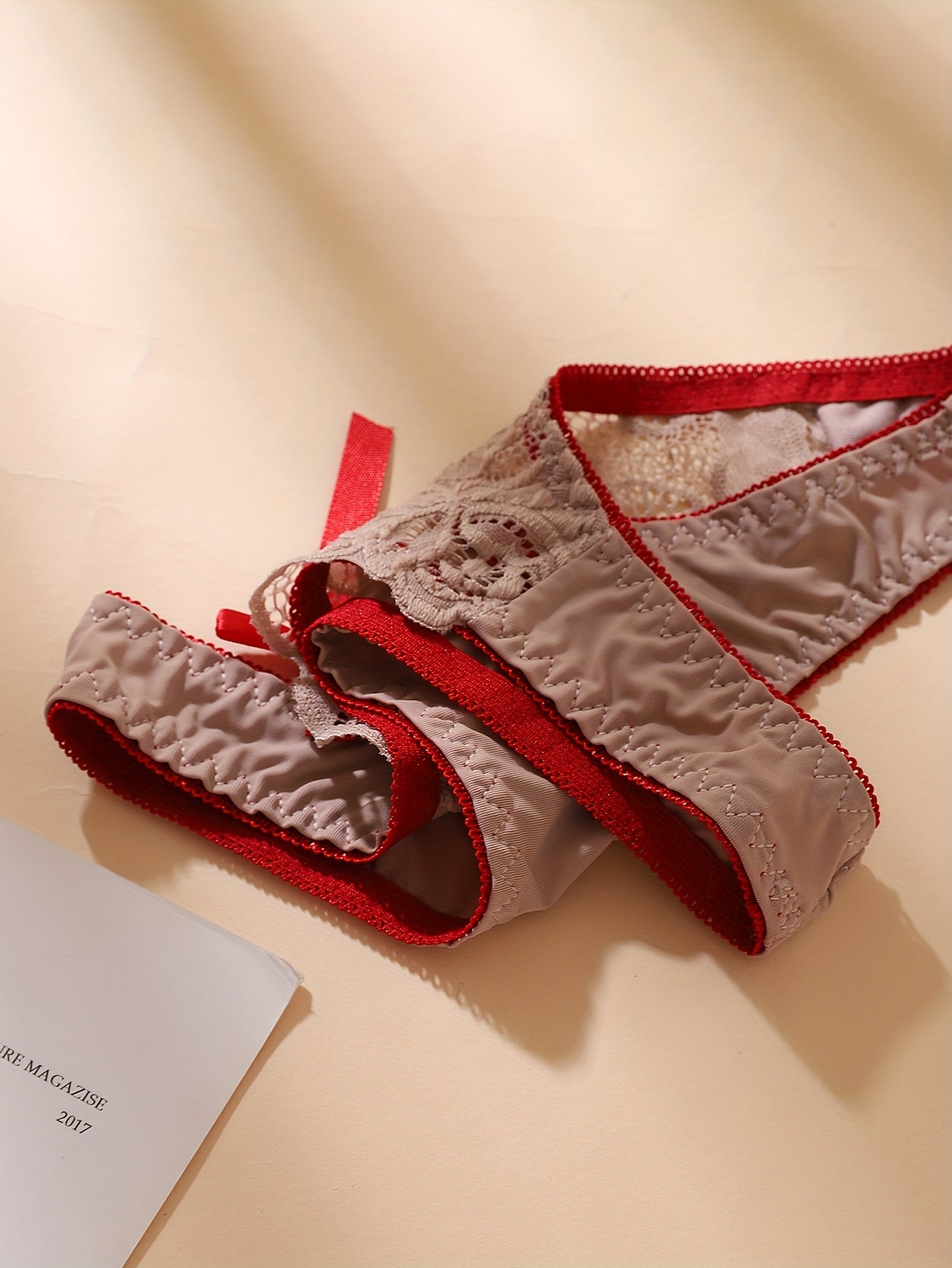 5pcs Set of Contrast Color Thin Edge Sexy Women'S Panties, Breathable, Fashionable, Soft, Close-fitting, Comfortable Lace Thongs
