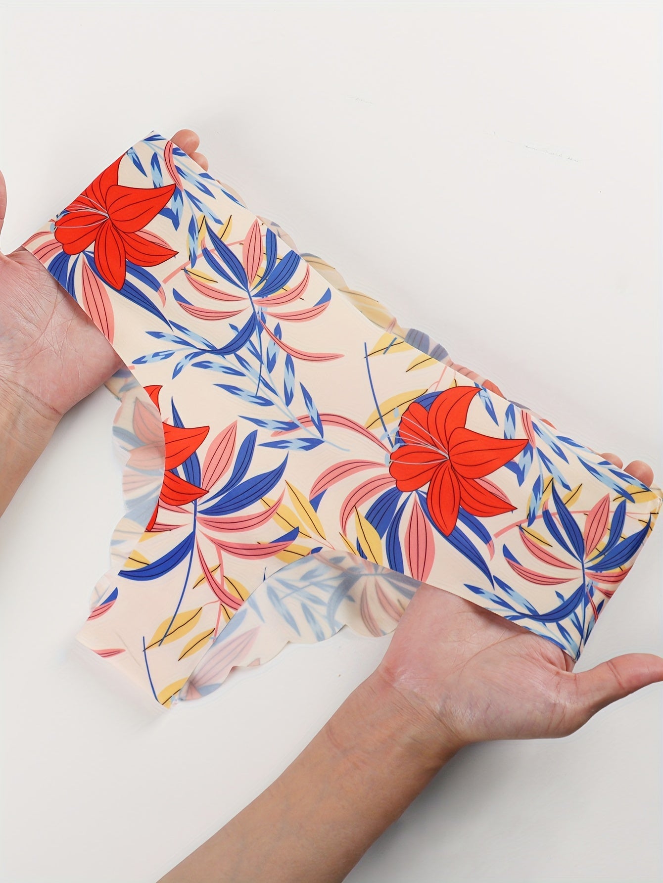 6pcs Pack, Comfortable Traceless Women's Panties, Breathable, Low Waist, Fashion Design, Art Print, Daily, Close-fitting