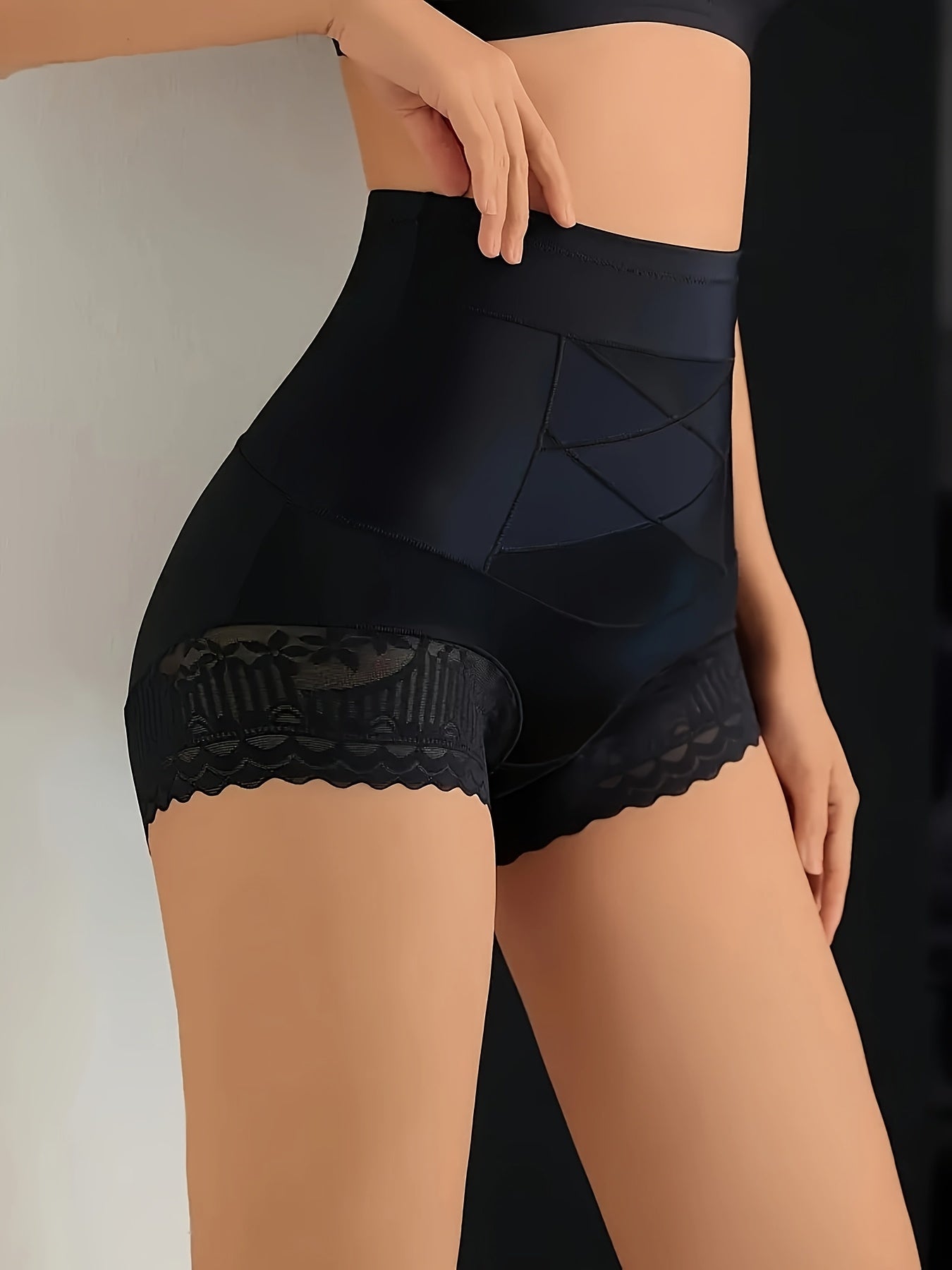 QUASTI 4-Pack High Waisted Women'S Panties, Breathable Knit with Lace Trim, Mid-Level Support, Striped Pattern, Romantic Style, Tummy Tuck Waist Shaping Underwear