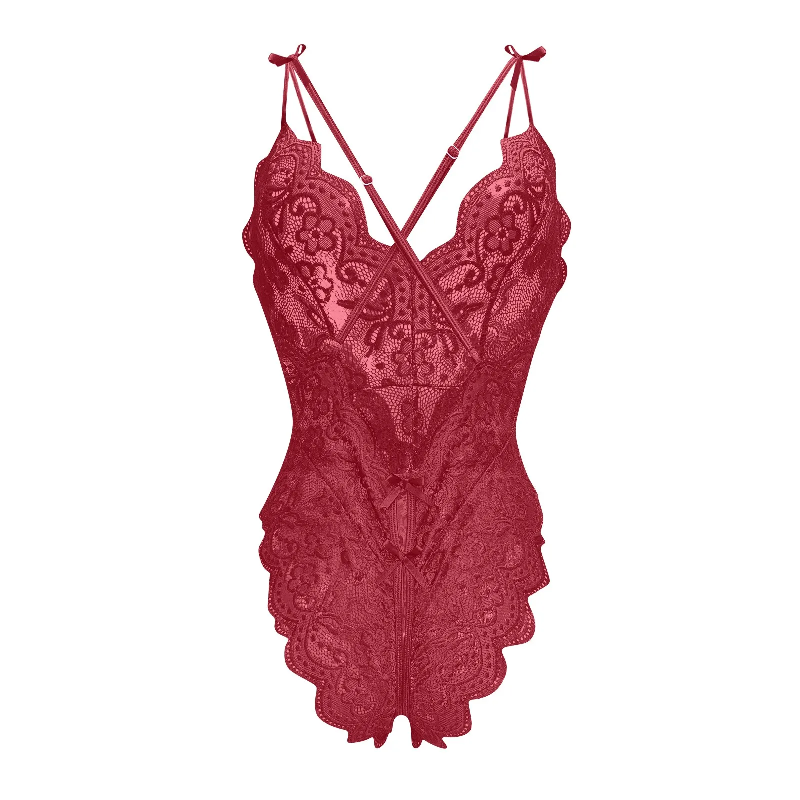 Women Lingerie Flower Lace Underwear Babydoll V Neck Sleepwear Strap